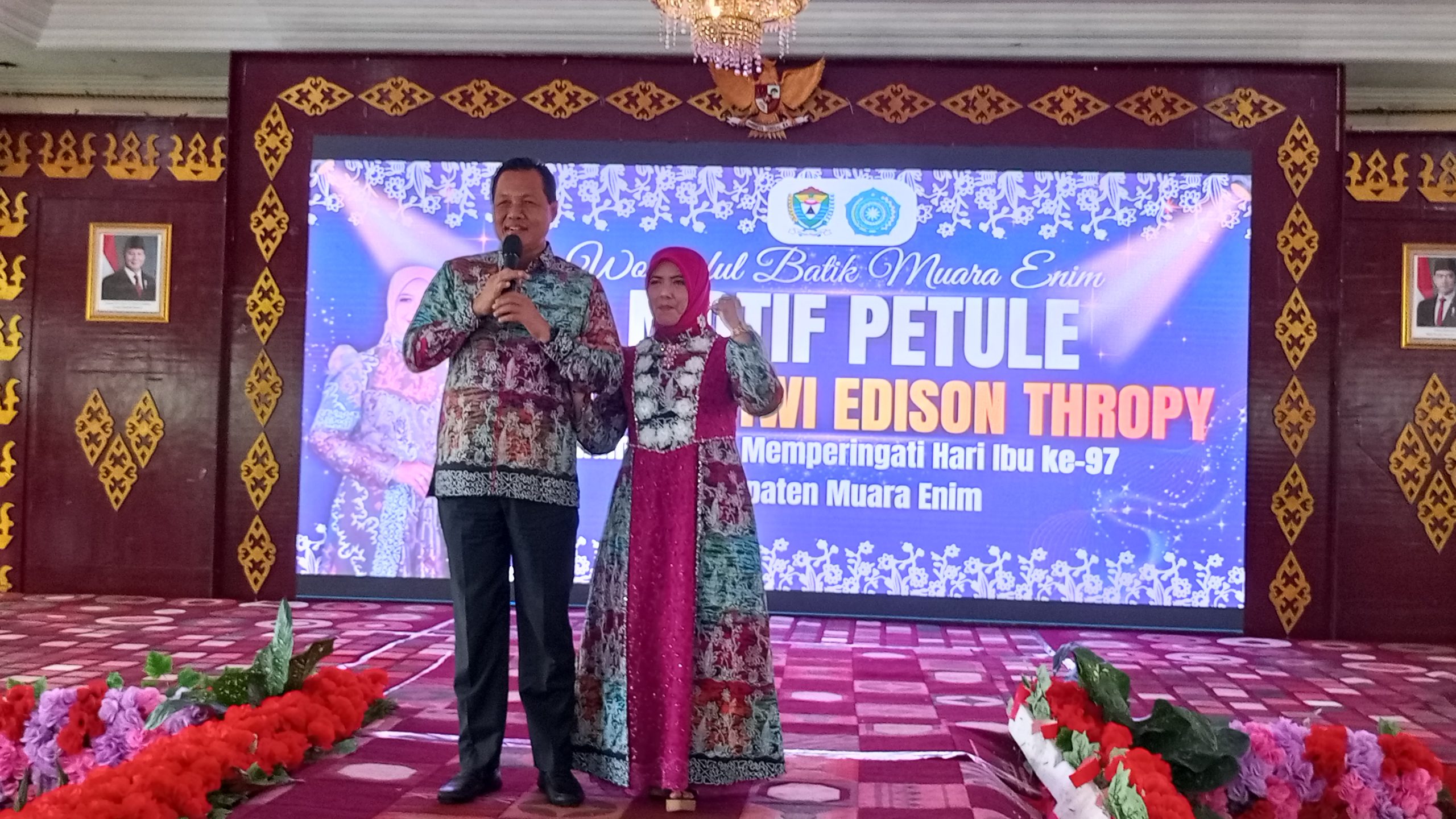 Sumselnews.co.id Muara Enim | Peringatan Hari Ibu ke-97 di Kabupaten Muara Enim dimeriahkan dengan penampilan Fashion Show Wonderful Batik Muara Enim Motif Petule Heni Pertiwi Edison Trophy, di Balai Agung Serasan Sekundang, Kamis (11/12/2025).