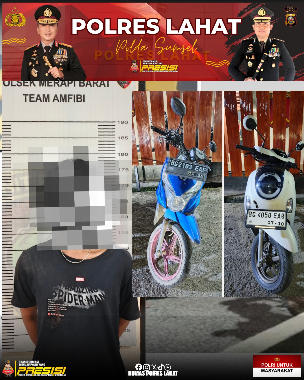 “Berita viral diunggah ke media sosial oleh masyarakat hingga akhirnya viral. Saat ini pelaku dan barang bukti diamankan di Polsek Merapi Barat beserta barang bukti 1(satu) unit sepeda motor Honda Scoopy.” Jelasnya